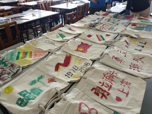 活动中,青年教工齐聚一堂,发挥自己的想象将自己对祖国改革开放40年以来取得的巨大成就用绚烂的色彩一笔一画的勾勒在环保袋上。现场气氛非常活跃,各位青年教工绘画的同时也在交流自己的所思所想,不时有欢声笑语传出。