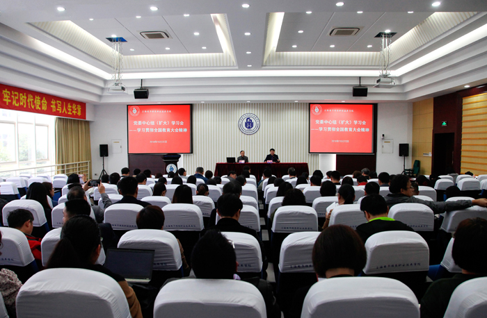 10月22日,以“学习贯彻全国教育大会精神”为主题,学校在C108报告厅举行党委中心组(扩大)学习会。学习会由学校党委书记田钦主持,原上海市委党校第四分校副校长项建春教授担任主讲,学校党委中心组成员、各党总支中心组成员参加学习。
