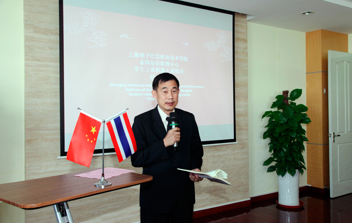 泰国职教中心师生团团长索姆努克·杜姆努伊致辞,表示训练营给每个人都留下了深刻印象,学生们学习了工业机器人发展的最新技术和应用经验,教师们交流了教学管理知识,学生们对工业机器人产生了浓厚的兴趣,希望毕业后能加入中国驻泰国企业工作,师生们将把训练营成果带回泰国实践,也将向泰国其他职业院校宣传活动成果,让更多的人了解上海电子信息职业技术学院的办学成果和教学特色,希望双方进一步加强交流,深化合作。