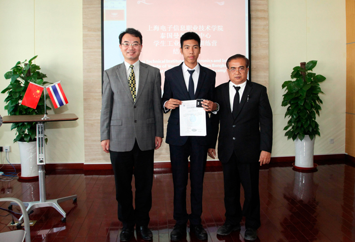 学校党委副书记、副校长顾剑锋致辞,祝贺中泰职教交流活动取得圆满成功。他说,两周的时间中,学生们学习了工业机器人技术专业知识和技能,教师们进行了职教领域的深度交流,师生们到企业参观实践,体验和感受各种校内外中华传统文化和上海海派文化特色,这次中泰职教交流活动,给双方都留下了美好的记忆,增进了彼此之间的了解和文化认同,建立了深厚的友谊,将为双方今后进一步发展合作打下坚实基础。