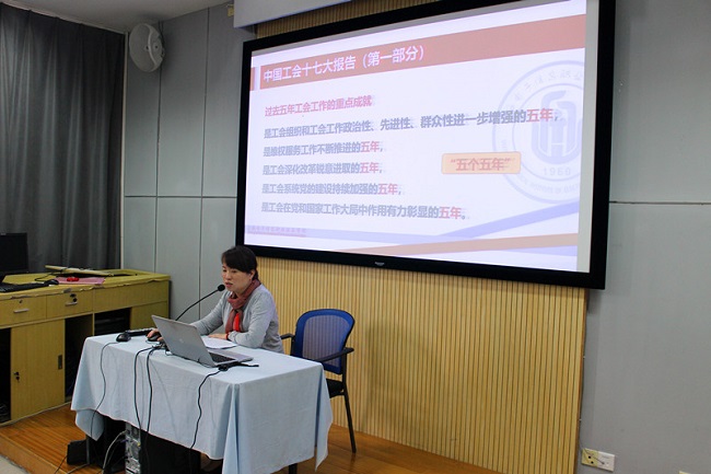 校工会将把学习贯彻中国工会十七大精神作为今后工会工作的重点,把学好工会十七大精神和学习贯彻习近平新时代中国特色社会主义思想和党的十九大精神以及全国教育大会精神结合起来,发挥工会的桥梁纽带作用,团结动员广大教职员工在学校优质校建设工作中建功立业,为决胜全面建成小康社会、夺取新时代中国特色社会主义伟大胜利而奋斗!(作者:王而平 文/张胤 图 供稿单位:校工会)