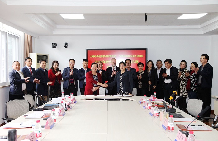 会上,职教集团与楚雄州政府共同商议并签订了《上海电子信息职业教育集团 楚雄州人民政府2019年职业教育合作实施方案》。