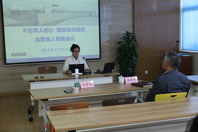 最后,杨秀英校长提出了学校后勤改革发展的总体要求。学校要按现代大学理念治校,现代大学治理结构需要新时代现代化的服务,服务队伍人员素质、品行、技能、现代化技术手段要有相应体现,要求后勤人在育人方面要做不可或缺的绿叶,于无声之处显本领、显作用。做到站位要高、姿态要低、服务要精、荣誉感要强。