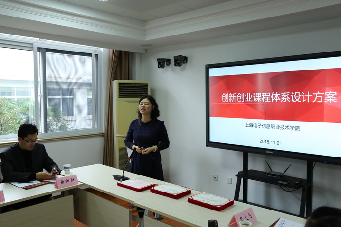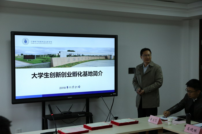 副校长窦争妍围绕学校专业协同创新发展课程体系介绍了学校创新创业教育情况。党委副书记、副校长张涛具体介绍了学校创新创业孵化基地的运行及相关项目。