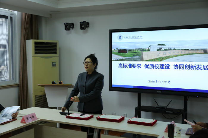 会上,党委副书记、校长杨秀英对各位专家表示热烈欢迎和衷心感谢,并做了以《高标准要求优质校建设协同创新发展》为主题的发言,全面介绍了学校优质校建设的总体思路、四个中心的建设路径,特别是协同创新发展中心的理念、整体架构、运行机制。