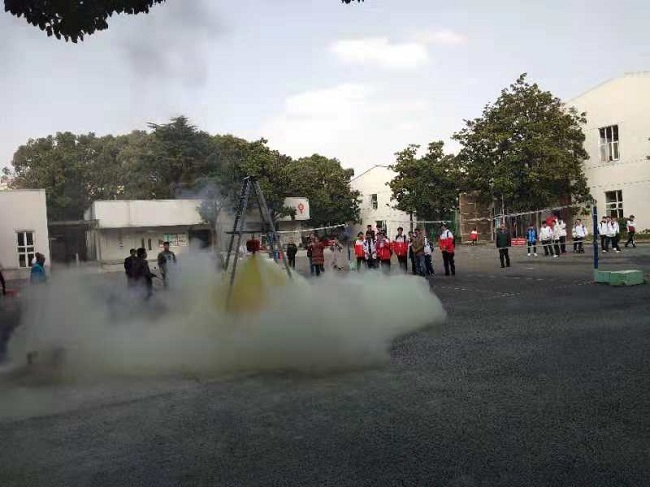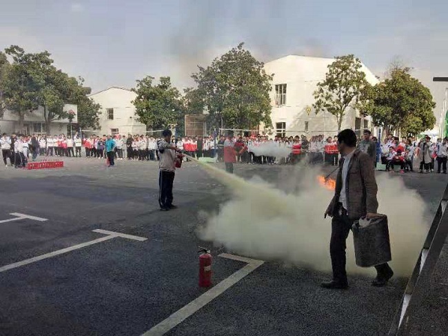下午12:30分,演练正式开始。安全保卫处熊跃辉老师强调了消防安全的重要性以及本次活动的意义,讲授并演示了干粉灭火器的使用方法和注意事项;之后,现场工作人员点起火盆,参演人员分成两个小组按照灭火的步骤和方法,依次进行了灭火器灭火实战演练;最后展示了挂式灭火器的灭火过程。