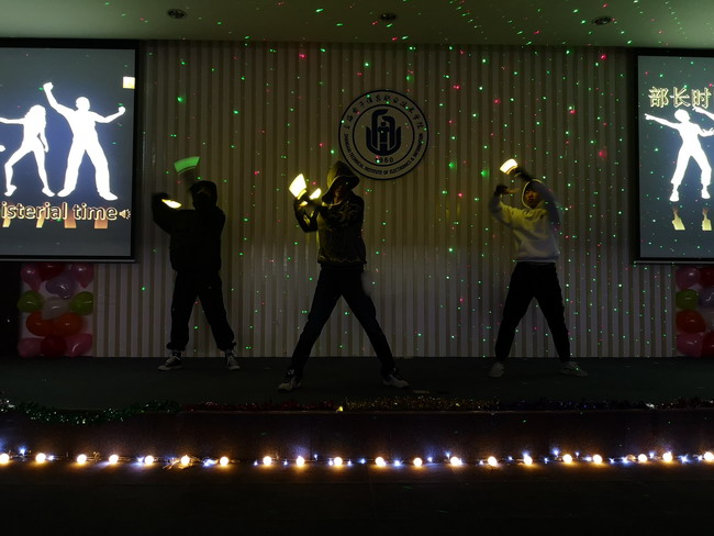 晚会随着歌曲《醒着醉》的唱响,正式拉开了序幕,精彩的相声《作弊记》用言简意赅的语言和风趣到位的表演告诫同学们“诚信考试、作弊无益”;中德机电3班带来的《军体拳》让晚会现场的每一个人都热血沸腾——不忘初心、为中华之崛起贡献一己之力;《魔鬼中的天使》、《telephone》等小惊喜歌舞表演更是为同学们献上了一场无与伦比的视听盛宴。保留节目《丝袜舞》再次引爆了现场气氛,观众的掌声、叫声、笑声不断,High翻全场。伴随着现场热烈的掌声,晚会在《部长时刻》的歌舞中正式落下帷幕。