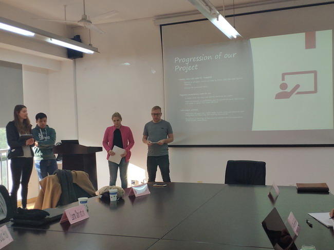 听完汇报后,瞿广峰老师对报告内容提出了调整和修改建议,李元元副院长对汇报做了全面、细致的点评与指导。4位德国留学生认真聆听、记录,表示会后将及时完成修改,争取在学校组织的实践项目汇报中有更好的表现。(供稿单位:通信与信息工程学院)