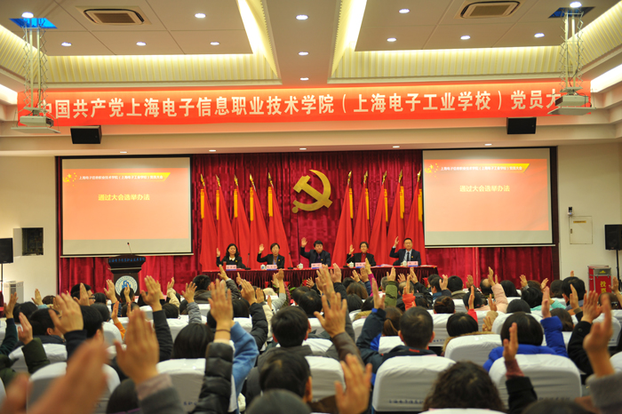 2019年1月18日,中国共产党上海电子信息职业技术学院(上海电子工业学校)党员大会在奉贤校区C108报告厅隆重举行。本次党员大会是在学校深入学习贯彻习近平新时代中国特色社会主义思想和党的十九大精神,积极推进中国特色高水平高职院校建设的关键时期召开的一次大会。大会的主题是:以马克思列宁主义、毛泽东思想、邓小平理论、“三个代表”重要思想、科学发展观、习近平新时代中国特色社会主义思想为指导,深入贯彻落实党的十九大精神和全国教育大会精神,继往开来,凝聚共识,进一步振奋精神,深化改革,为全面落实立德树人根本任务,凝聚广大共产党员和全体师生员工的智慧和力量,把学校建成办学特色鲜明、国内一流、具有国际影响力的中国特色高水平高职院校的发展目标而努力奋斗。