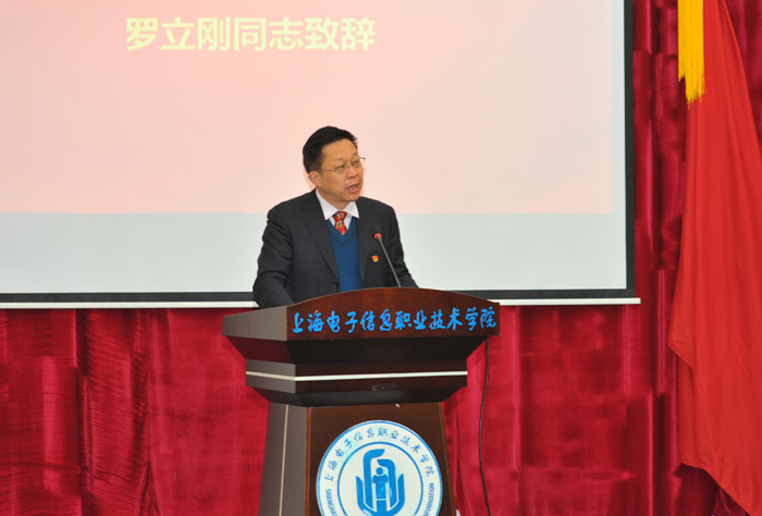 罗立刚同志致辞,代表上海市教卫工作党委对大会的召开表示热烈祝贺。他说,上海电子信息职业技术学院2008年党代会召开以来,特别是2013年划转教委以来,在市教卫工作党委、市教委的领导下,学校党委坚持社会主义办学方向,励精图治、勇于创新,在改革发展过程中积累了一批好的经验和做法,成为职业教育改革的生动案例和高等职业教育内涵式发展的优秀示范。在学校奋力建设成为办学特色鲜明、国内一流、国际有影响力的应用技能型高校的关键时期,召开党员大会具有特别重要的意义。他代表市教卫工作党委提出三点希望:一是要坚持党的全面领导,为学校建设提供坚强保证;二要坚持立德树人根本任务,努力培养中国特色社会主义事业合格建设者和可靠接班人;三要坚持改革创新精神,着力构筑高水平高职院校建设新优势。