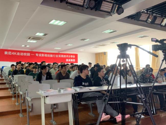 为了让学生了解市场最新的微视频拍摄技术,拓展影视方向专业技能,4月8日下午1:30,设计与艺术学院邀请索尼(中国)有限公司的工程师团队来我院进行微视频电影拍摄技巧与操作流程讲座,我院17级影视动画专业、数字媒体艺术设计专业、数字媒体应用技术专业的学生参加了这次讲座。