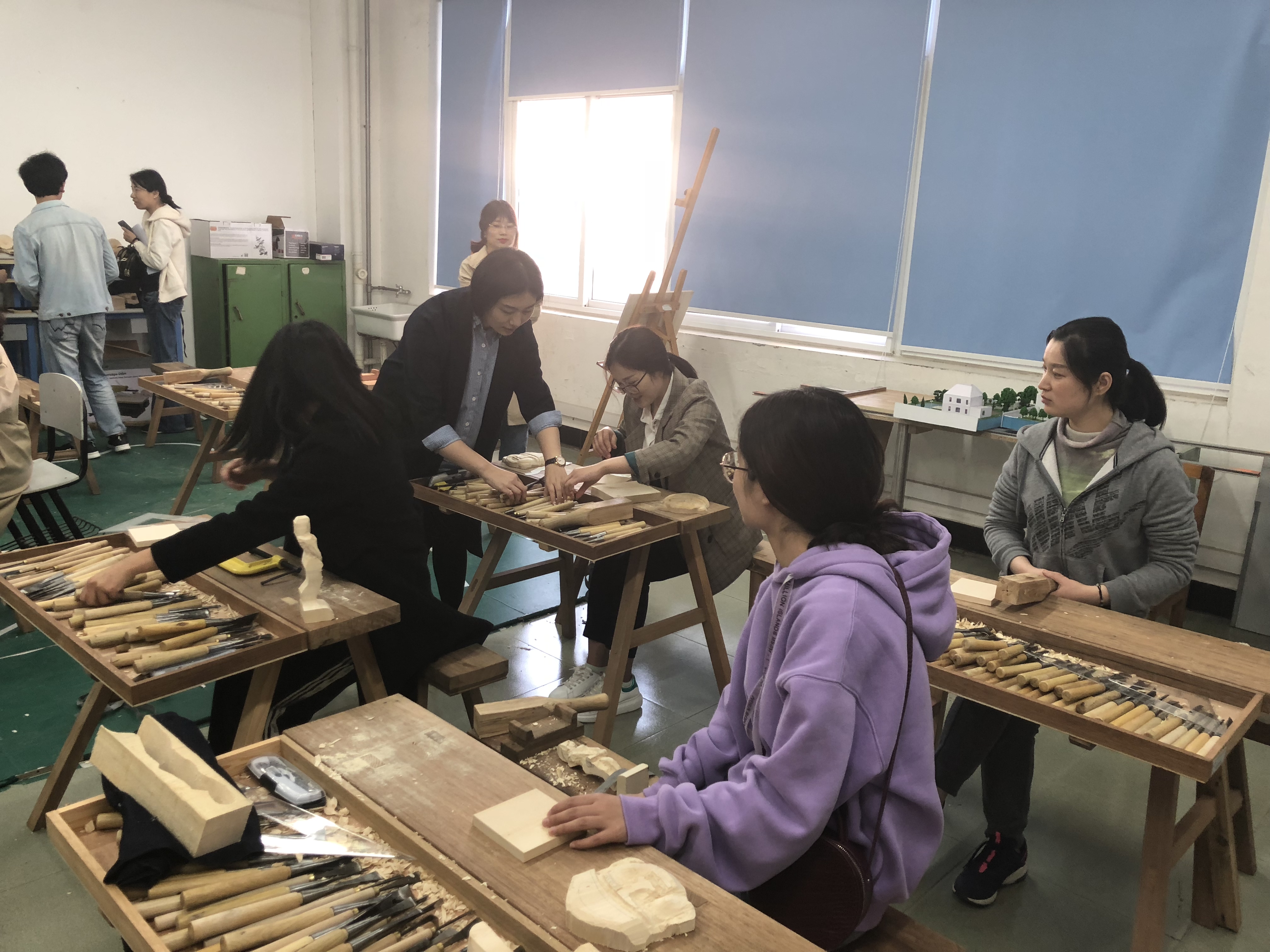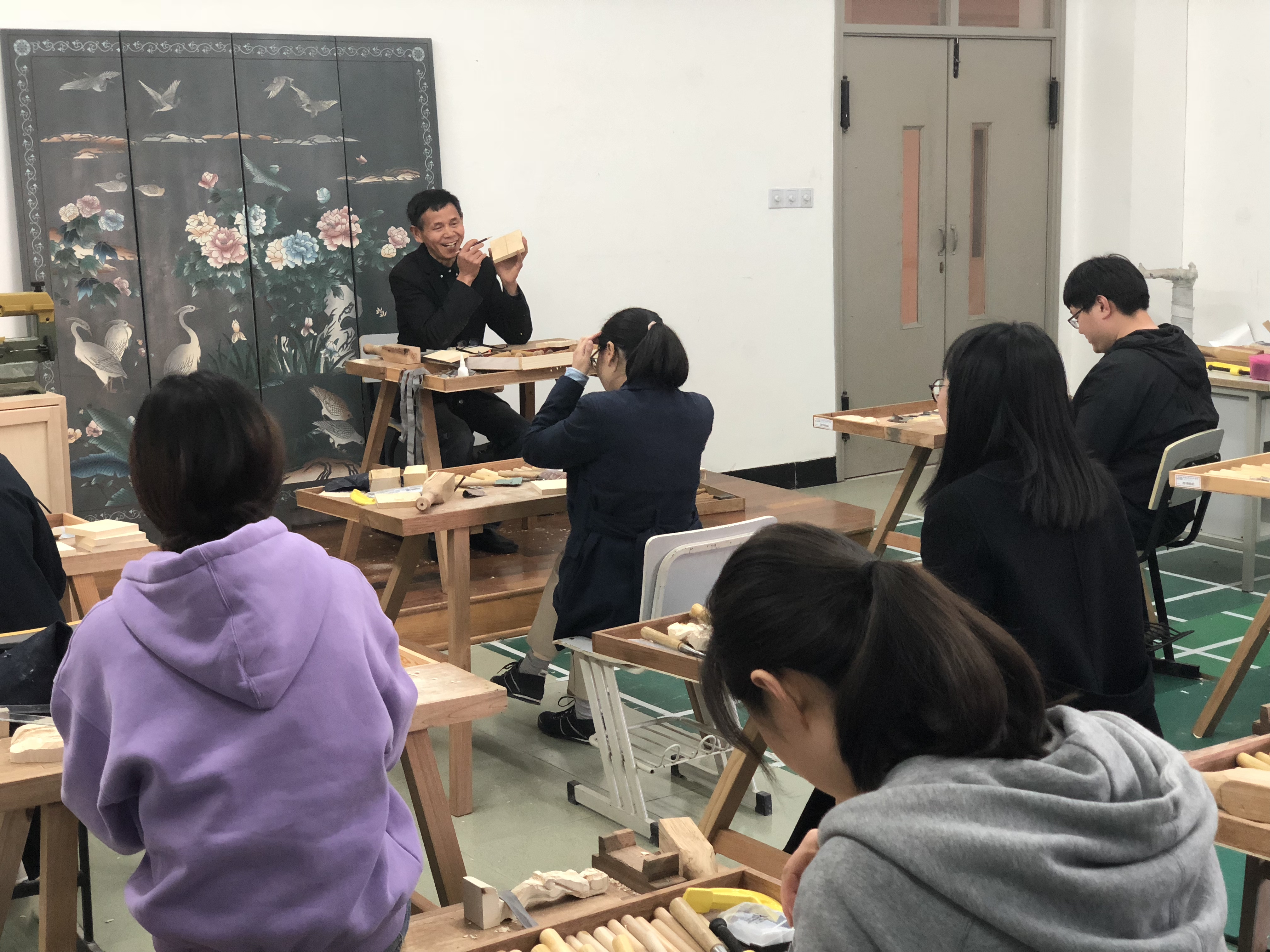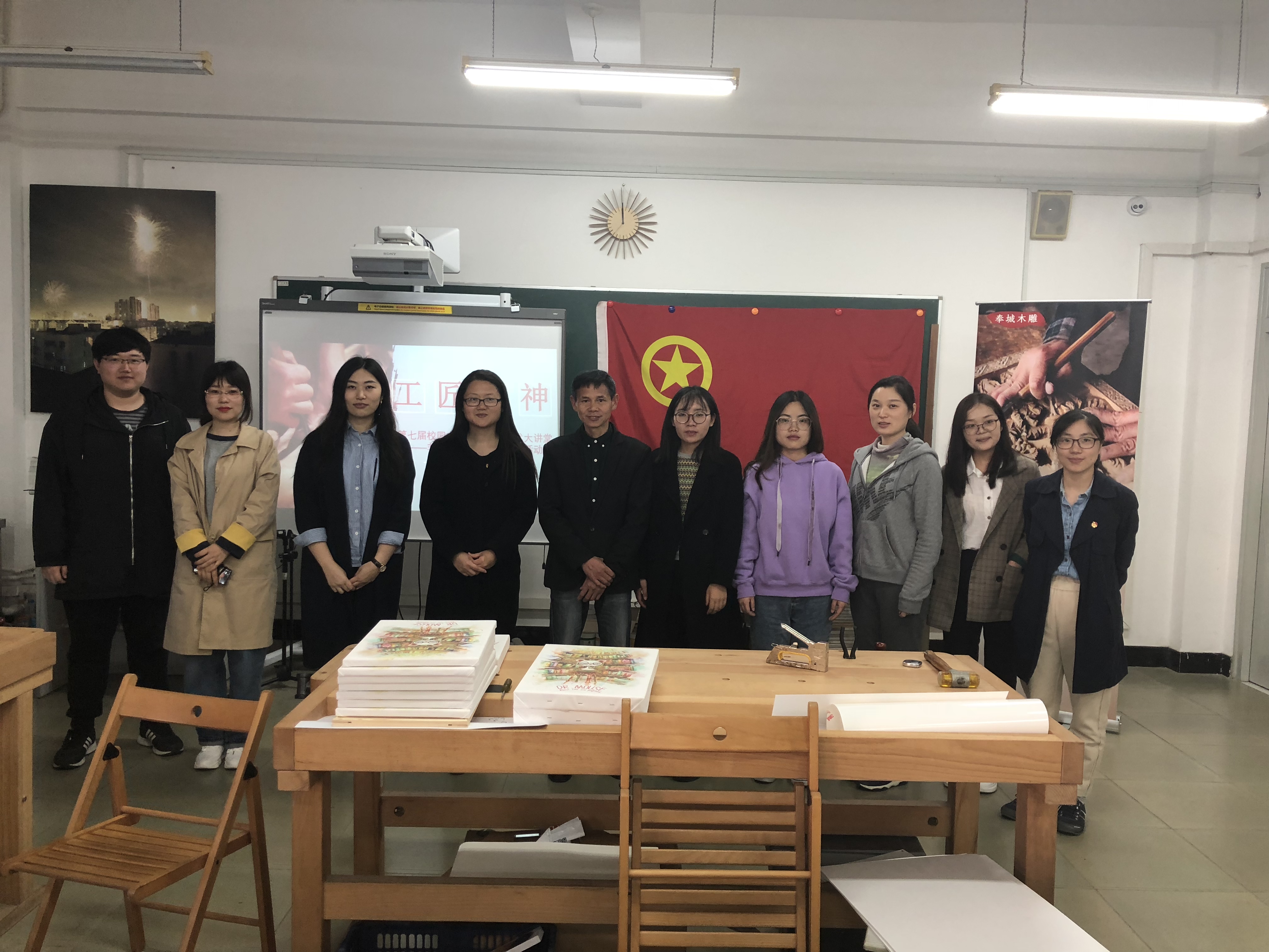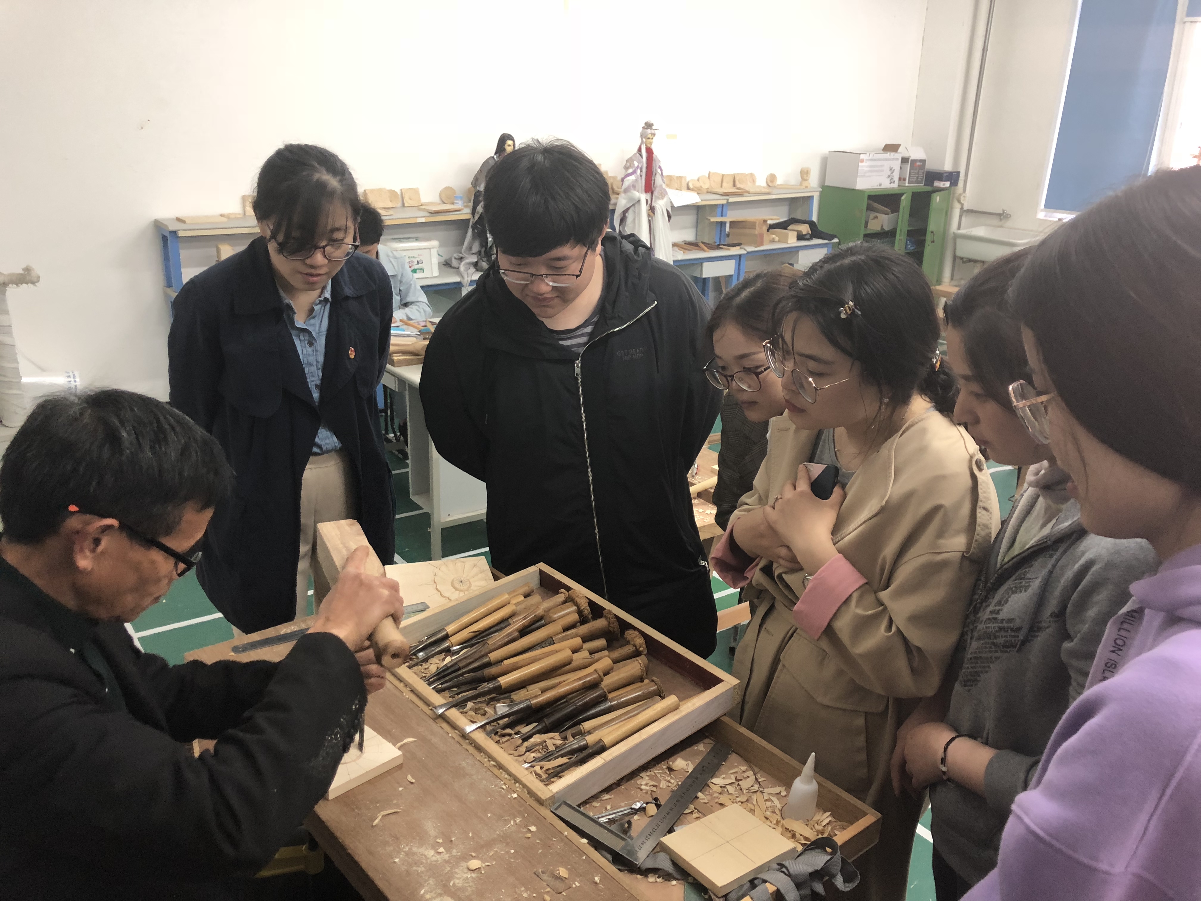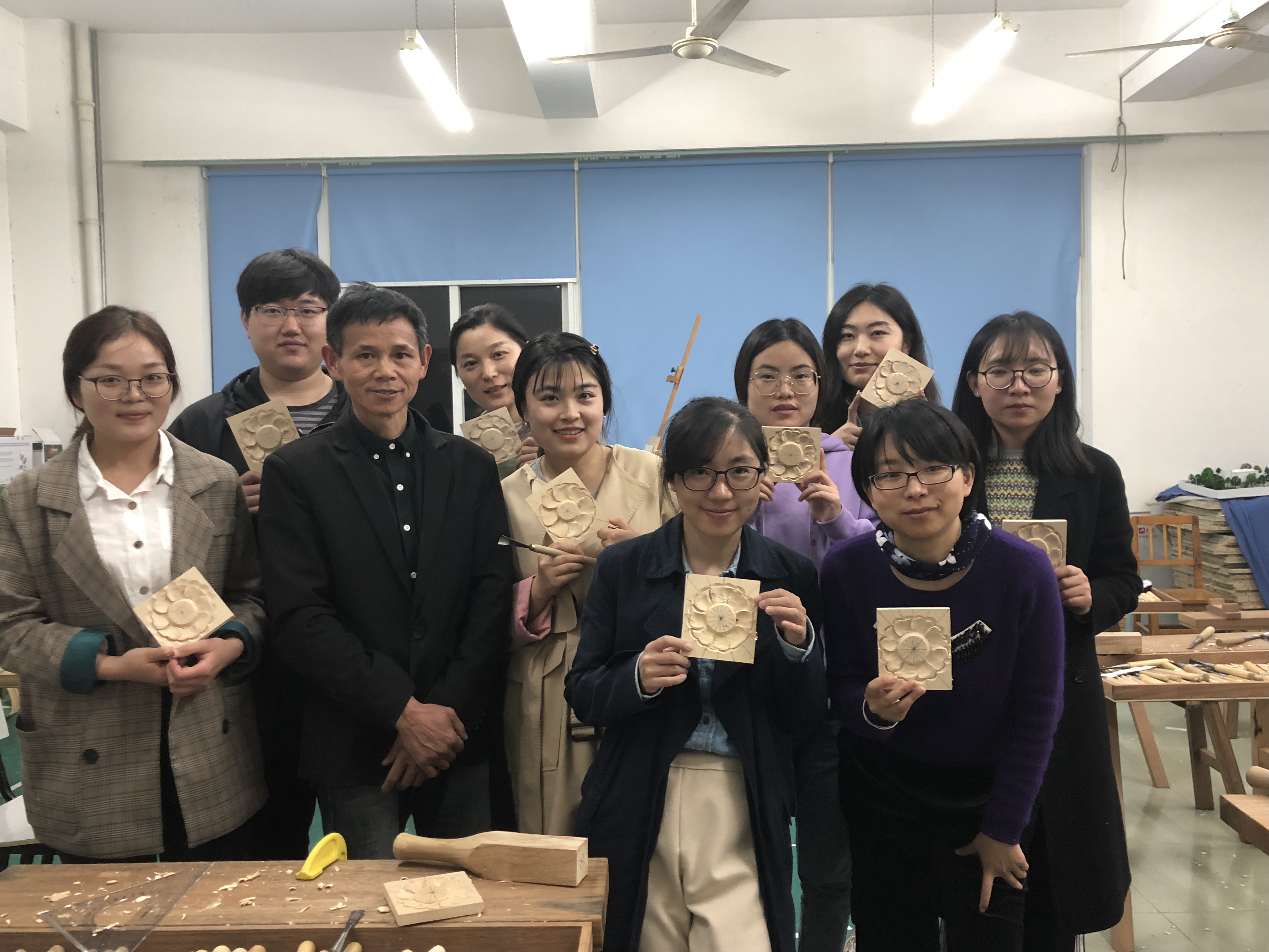 为贯彻落实习近平总书记在党的十九大报告中提到的“要弘扬工匠精神,营造精益求精的风气”的重要讲话精神,提高365官网青年教师的文化素养,2019年4月17日,由校团委主办,设计与艺术学院教工团支部承办的第七届校园文化艺术节之艺术大讲堂——木雕非遗文化主题团日活动在中德楼E101奉城木雕非遗传承人工作室顺利开展。校团委书记蔡林洁、副书记何进松,各教工团支部青年教师代表共同参加了此次活动。