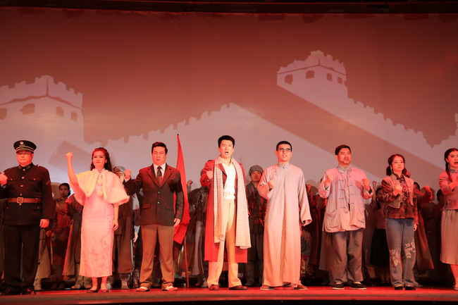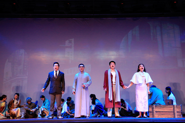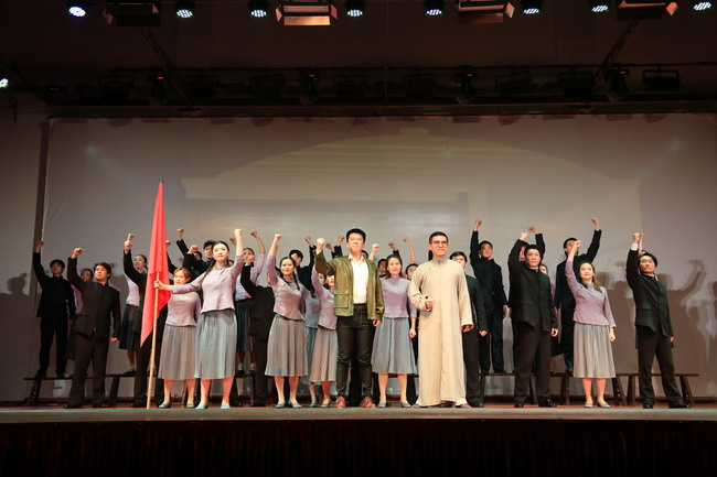 悠扬的音乐响起为演出拉开序幕,音乐剧《国之当歌》精彩上演,来自上海歌剧院的演员们精彩演绎了人民音乐家聂耳与左翼戏剧家田汉从相识到相知,直至共同创作“义勇军进行曲”的故事。剧情起自“倾听民众苦难之声”,继之以“吹响民族救亡号角”,融汇上海的都市风情和抗战的历史烟云,将聂耳激情而朴实的歌曲与音乐剧的现代演绎方式相结合,并以“国歌之父”聂耳的艺术人生为主线,展现了他的抱负与理想,弘扬了他的爱国主义精神。音乐剧不仅为365官网师生上演了一场极具艺术品位的视听盛宴,更上了一堂传承爱国主义并激扬浩然正气的生动一课,专场演出在师生经久不息地掌声中落下帷幕。