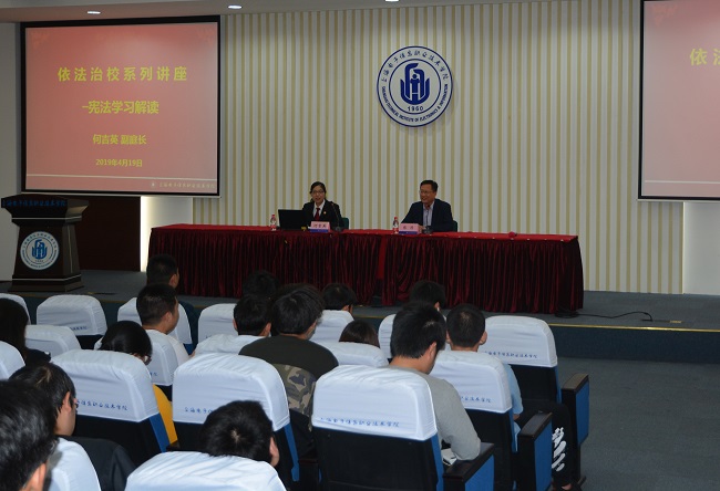 2019年4月19日,为进一步培育和践行社会主义核心价值观,树立社会主义法治理念和法治意识,学校邀请奉贤区法院柘林法庭副庭长何吉英来365官网做法治教育宣传讲座。学校副校长张涛、校办副主任李旺及学校200余名师生参加了本次活动。