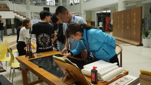 老师参与书法体验
