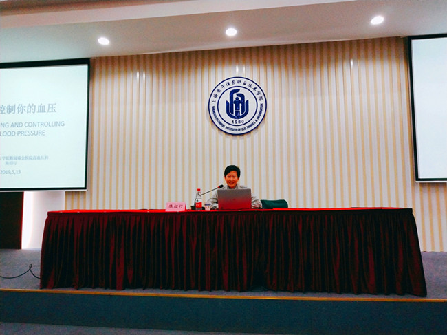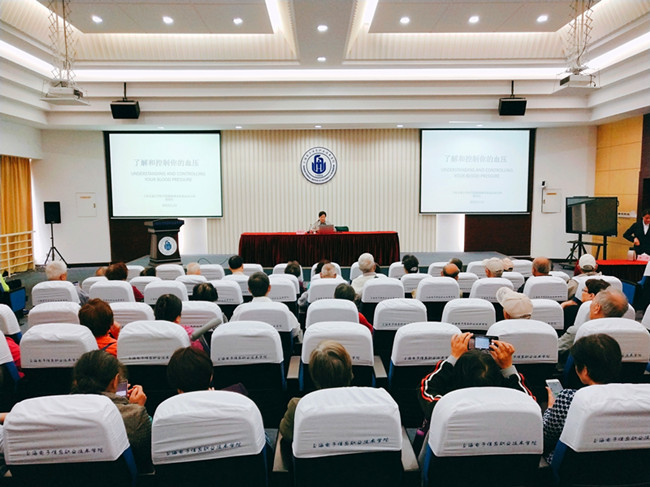 为使退休教职工有一个健康的身体,学校邀请上海交通大学医学院附属瑞金医院主任医师、高血压研究所副所长、高血压科副主任陈绍行作了主题为“了解和控制你的血压”健康知识讲座,以提高职工对高血压病危害严重性的认识。高血压是最常见的慢性病,也是患心脑血管病最主要的危险因素,高血压患病率随年龄增长而升高。陈绍行医生为退休教职工们科普了高血压的高危人群、形成原因、可能引发的并发症、预防方法以及治疗时的注意事项等内容。参加讲座的退休教职工对本次讲座给予了很高的评价,认为此次讲座大大提高了自己对高血压疾病的认识。