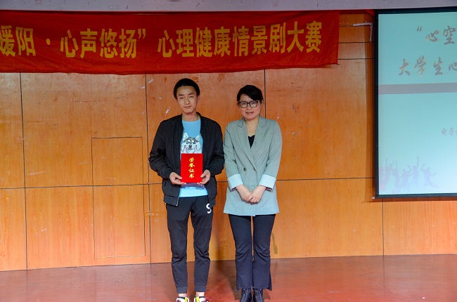 为全面贯彻落实习近平新时代中国特色社会主义思想和党的十九大精神,进一步落实教育部关于《高等学校学生心理健康教育指导纲要》(教党〔2018〕41号)文件要求,切实加强和推进育德与育心相结合的学校心理健康教育工作,由学生工作部(处)大学生心理健康教育与咨询中心主办,电子技术与工程学院承办的“心空暖阳·心声悠扬”心理健康情景剧大赛于5月17日中午12点在I401顺利举行,兼职心理老师、各学院参赛团队以及学生观众等近200名师生参加了活动。心理健康教育与咨询中心主任张楠楠、马克思主义学院刘蔚等5位老师莅临决赛现场担任评委。电子技术与工程学院党总支副书记、副院长陈真作赛前致辞。