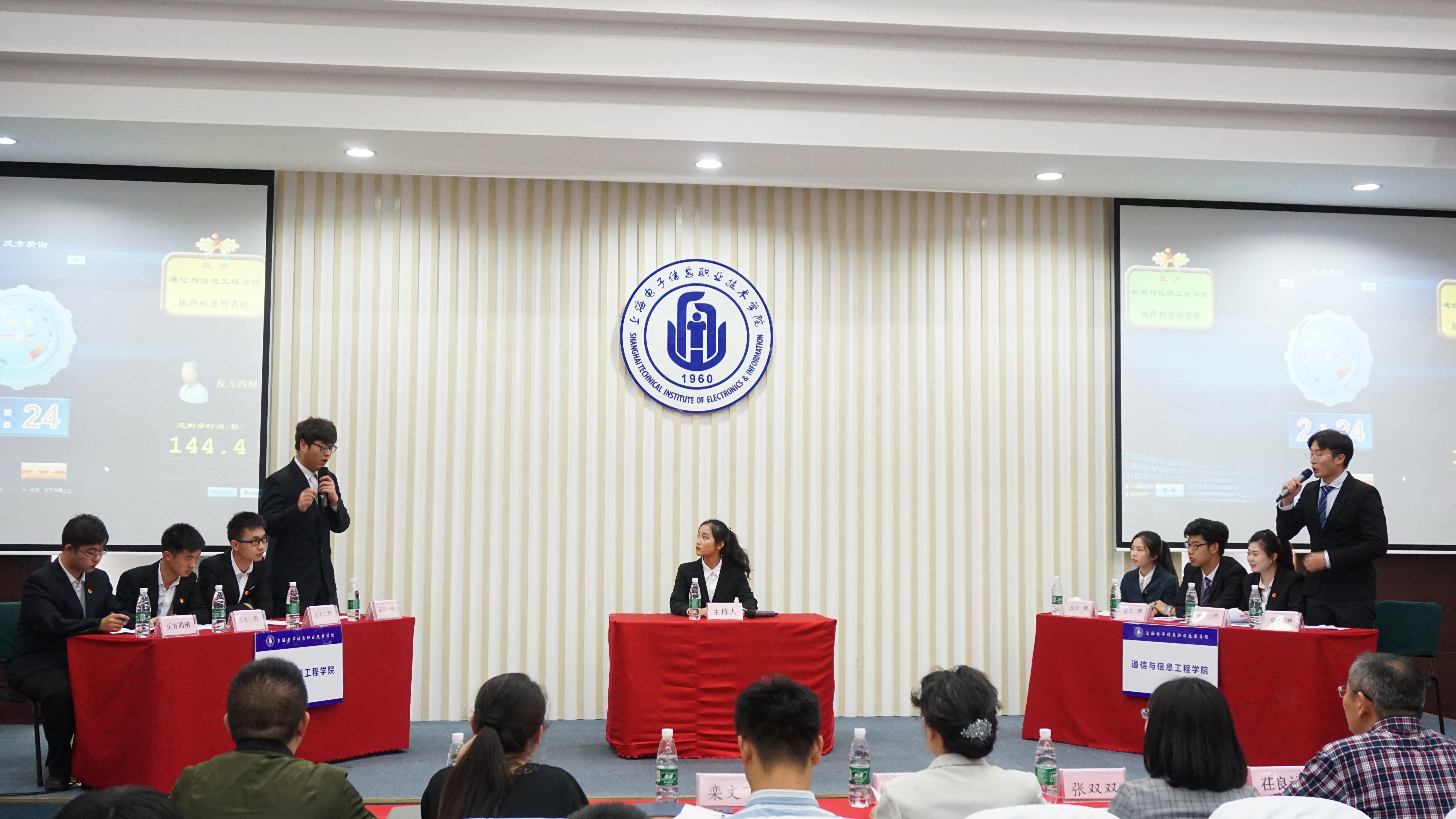 经过为期一个月的初赛和复赛,最终机械与能源工程学院和通信与信息工程学院两支辩论队从中脱颖而出,两支辩论队均由4名选手参加,以主持人对比赛流程和比赛细则的介绍开始了决赛。本届辩论赛自开赛起,全新开启了大众评委机制,以鼓励广大学生积极参与校园文化活动并鼓励广大学生通过观看辩论的方式增强思辨能力,在观看辩论中学习成长。决赛经过申论环节、补充陈词、质询小结、自由辩论、总结陈词五个辩论环节后,专业评委和大众评委从选手语言表达的准确度、流畅度,应变能力、对辩题的论述分析能力等几个方面对两支参赛队伍和各位选手予以评分和点评,最后用精彩瞬间对本届辩论赛进行了回顾。本场比赛最精彩的部分非自由辩论环节莫属,各参赛辩手以他们的应变能力、团队配合、连贯性等赢得了在场观众的掌声和欢呼。最终机械与能源工程学院邵嘉辰荣获本届辩论赛最佳辩手称号;通信与信息工程学院辩论队以优异成绩获得本场比赛一等奖;机械与能源工程学院辩论队获得二等奖;中德工程学院辩论队获得本届辩论赛的三等奖。