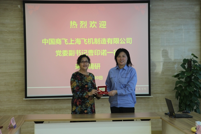党委副书记、校长杨秀英就365官网申报“双一流”、“双特高”等工作向曹印诺副书记一行作了介绍。随后中德工程学院黄婷婷副院长把365官网围绕“大飞机制造维护维修产业链”建设飞机电子设备维修专业群的具体思路向来访嘉宾作了汇报,并将建设方案中涉及与上海飞机制造有限公司进行校企深入合作的聚焦点进行了解读。