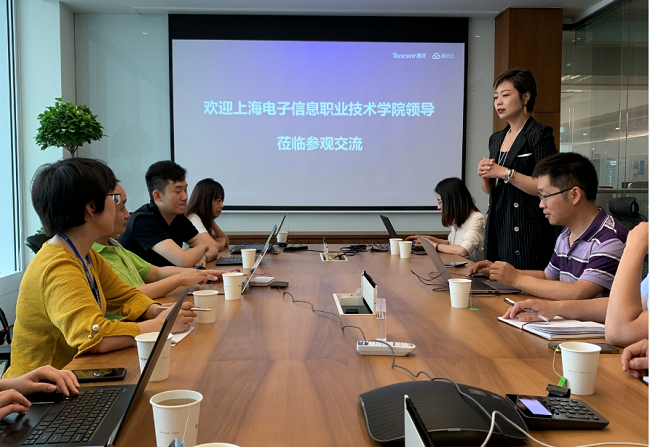 调研中,腾讯相关部门工作人员就腾讯校企合作方案、信息安全与大数据专业建设等方面作了详细介绍。针对校企合作方案,工作人员主要介绍了基于人工智能、大数据、信息安全、云计算、移动开发等五大专业方向的七大合作模式,重点介绍了短期训练营、实验室共建、学院共建等三种合作模式。在信息安全专业和大数据专业建设上,重点介绍了校企合作人才培养模式,包括基于岗位能力分析开设的不同课程等,这一人才培养模式旨在为学生提供从学习到就业的“一站式”解决方案。交流中,李元元副院长介绍了365官网的基本情况,以及通信与信息工程学院的专业建设、实训室、工作室等情况,并表示调研收获颇丰,学院希望能与腾讯公司进一步开展交流合作。