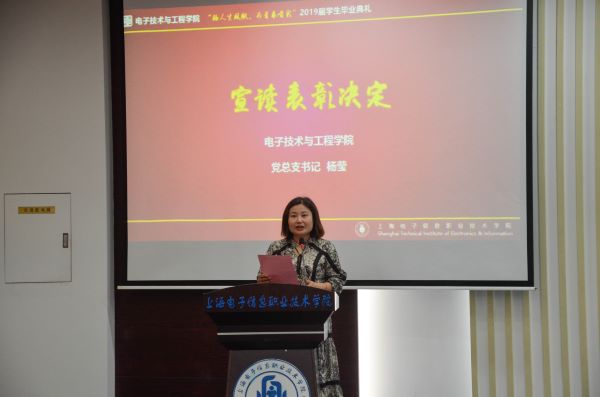 2019年6月25日上午10点,电子技术与工程学院“扬人生风帆,为青春喝彩”2019届学生毕业典礼在C108报告厅隆重举行。学院党政领导、教师代表出席典礼,毕业班辅导员王山月主持会议。