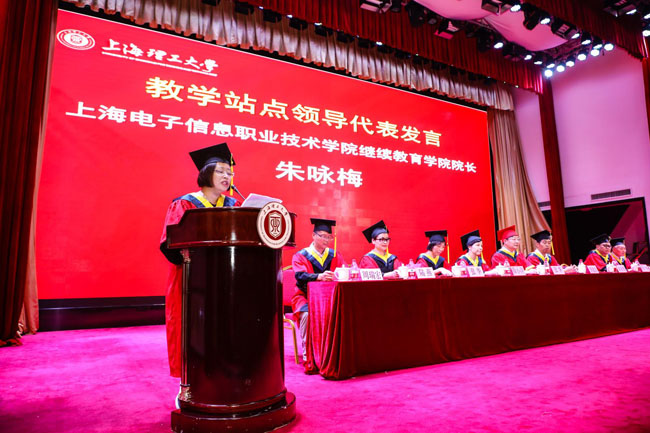 6月30日上午,2019届成人高等学历教育毕业典礼在军工路校区大礼堂隆重举行,上海理工大学副校长张华、各职能部门领导、继续教育学院朱咏梅院长及教师代表等嘉宾主席台就座。