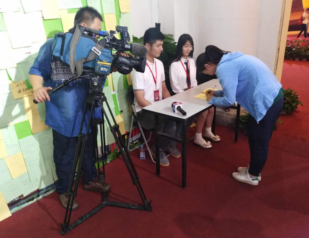 在志愿者活动的开展过程中,我院171数媒应用1班的周晓倩同学接受了上海东方卫视的采访,每天浏览无数参观观众的感言,对她来说就是一次次生动的精神洗礼,采访中她表示:“除了要做好本职工作以外,还有吸取前辈的经验,把这些经验与我们的实际生活相结合,同时我们要感谢那些日日夜夜奋斗在前线的革命工作者们,正是因为有他们的无私奉献,才会有今天繁荣昌盛的社会。”