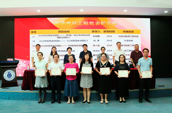 校党委副书记、纪委书记毛玉婷宣读了从教30周年表彰决定及名单;党委副书记、副校长张涛宣读创“学院荣誉”奖颁奖词及表彰名单;副校长窦争妍宣读宣读“教学质量工程”奖颁奖词及表彰名单;副校长徐德明宣读“技能大赛”奖颁奖词及表彰名单;副校长方林中宣读“教学科研”奖颁奖词及表彰名单。学校领导为获奖集体及个人颁发了荣誉证书。