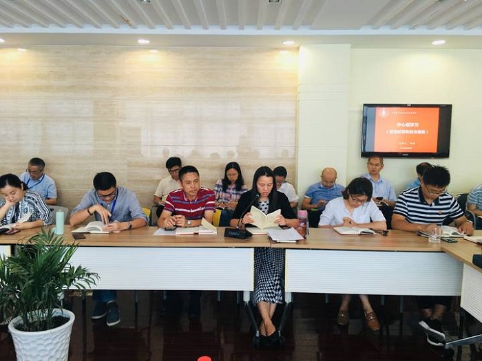 田书记和方副校长带头领学了《习近平新时代中国特色社会主义思想学习纲要》和《习近平关于“不忘初心、牢记使命”重要论述选编》中关于“政治纪律和政治规矩”及“担当作为”的篇章,中心组成员代表也分别领学了自学中体会最深的篇章,随后,与会同志进行交流发言。
