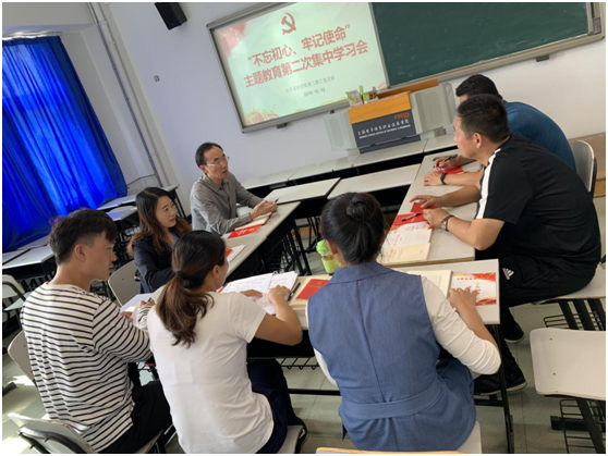 2019年10月12日展在奉贤校区D202会议,公共基础学院第二教师党支部在第一次集中学习的基础上,组织召开“不忘初心,牢记使命”主题教育集中学习读书会,会议由基础学院第二党支部书记王春丽主持,全体党员参加。