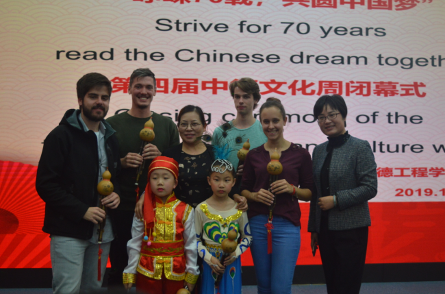 曲艺荟萃,彰显艺术魅力;古韵流芳,尽透传承风采。2019年10月28日,中德工程学院党总支主办,中德工程学院团总支、学生会和易班学生工作站共同承办的“峥嵘70载,共圆中国梦”中德工程学院第四届中德文化周闭幕式在C108报告厅隆重举行。中德工程学院党总支副书记、副院长施云美老师、学生管理办公室主任姚一平老师、团总支书记张晶老师、辅导员汝勇和严卫华老师、学院办公室谢梦星老师及中、德学生共计220余人出席。