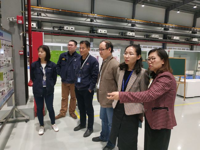 会后,在上飞公司培训总监刘铭跃的陪同下我院教师参观了上飞公司新落成的培训车间。双方就校企共建实训基地、实训设备和耗材等具体内容进行了沟通了和讨论。