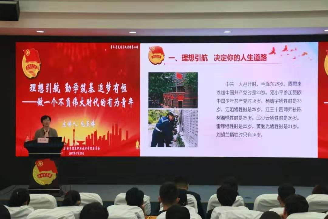为进一步推进中国特色社会主义理论和习近平总书记系列讲话精神进团课,紧紧依靠党建带团建,牢牢把握育人的主线,使青年团员成长为中国特色社会主义事业合格的建设者和可靠的接班人,11月15日中午,校党委副书记、纪委书记毛玉婷应邀在中德楼C108报告厅为2019年青年马克思主义者培养工程的大骨班及活力班学员作《理想引航 勤学筑基 追梦有恒——做一个不负伟大时代的有为青年》主题团课。