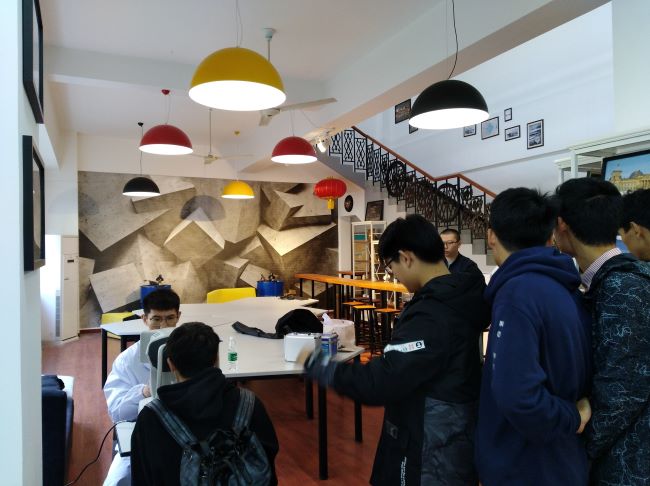 在讲座结束后,朱晓宇博士亲切地解答同学们提出的问题,同时来自上海市眼病防治所的医生为同学们无偿进行眼科检查,详细为同学们分析病症给出治疗建议。