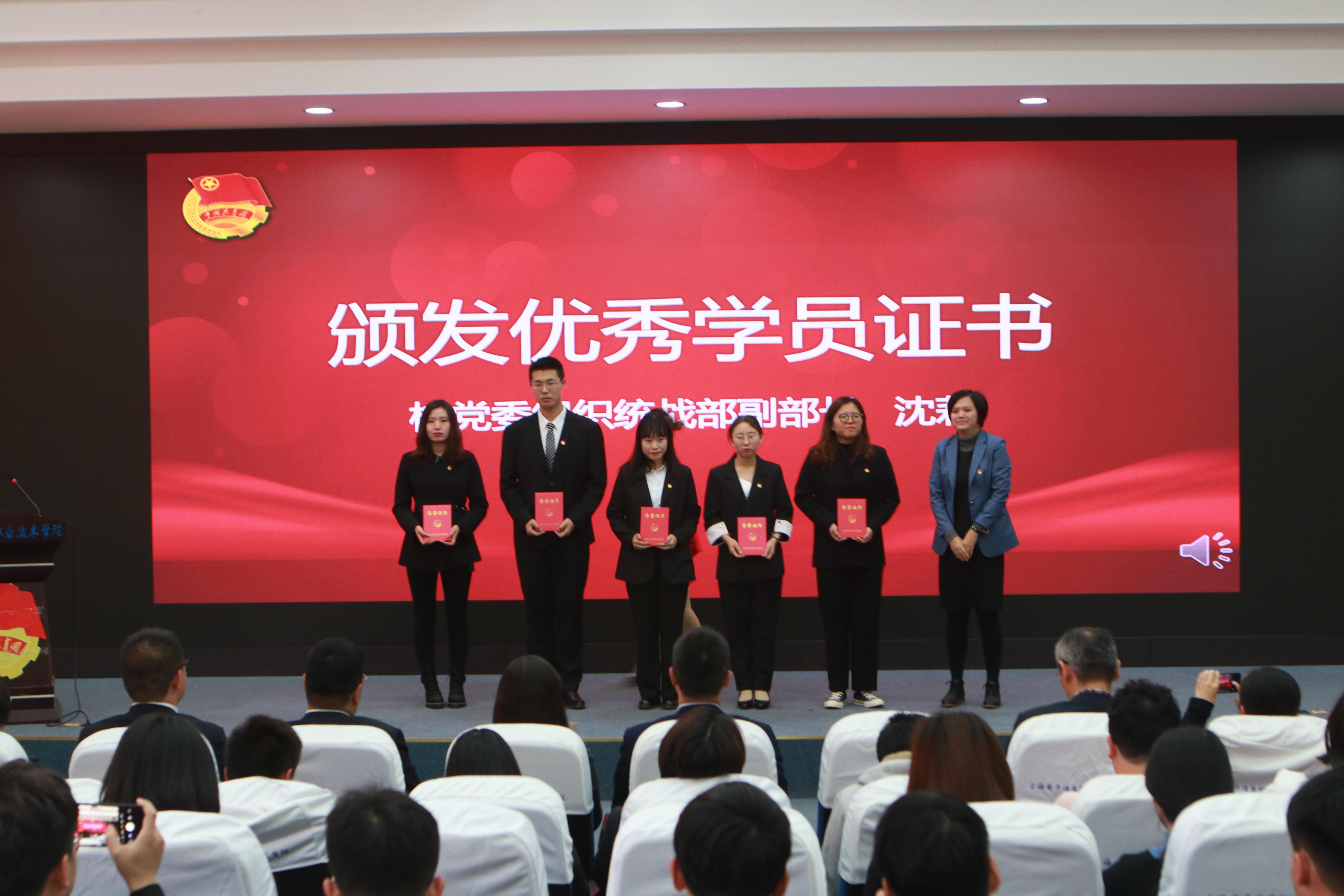 会议上,校团委社团管理部负责人滕崧老师宣读了结业学员名单,马克思主义学院副院长茌良计老师为结业学员代表颁发证书。校团委副书记何川老师宣读优秀学员名单,党委组织统战部副部长沈莉老师为优秀学员代表颁发证书。