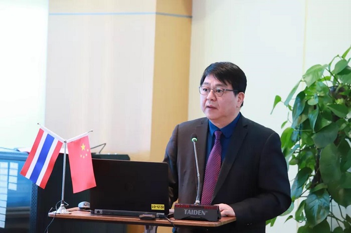 党委书记田钦在大会上发表讲话,他说,理事会的成功召开为中泰申谷学院的运行、建设和发展明确了目标、建立了工作机制、奠定了长期合作的基础,希望通过“互学互鉴互利共赢”实施中泰合作办学,进一步夯实留学生学历教育。通过课程标准国际化、师资培养多元化、校企合作深入化、就业实习多样化,为“一带一路”倡议下的泰国企业和中资企业培养复合型技术技能人才。进一步推进中泰申谷学院发展,努力把中泰申谷学院做出特色,形成可持续发展的品牌项目。