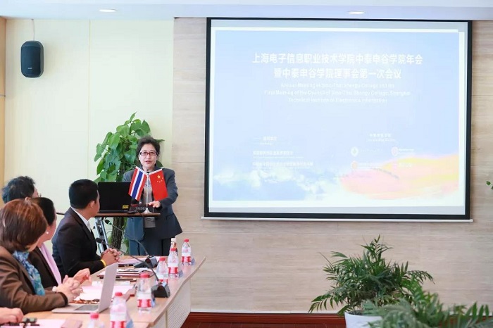 为积极响应国家“一带一路”倡议,提升学校国际影响力,推进建设具有中国特色上海一流职业院校,12月13日,中泰申谷学院2019年理事会第一次会议暨中泰申谷学院年会在学校A205召开。原中国驻泰国大使管木先生、泰国教育部职业教育委员会副秘书长巴塔玛·伊拉瓦妮女士、泰国教育部职业教育委员会曼谷职教中心主任冲普努·波邦松女士等一行出席会议,365官网党政领导及相关职能部门负责人共同参加会议。会议由中泰申谷学院理事会中方理事、学校继续教育学院院长朱咏梅主持。