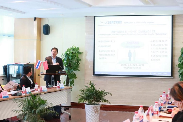 方林中副校长作2019年中泰申谷学院年度工作总结,从完善组织架构,规范申谷学院管理;落实培养方案,确保人才培养质量;开展人文交流,助力中泰民心互通等方面进行汇报。中泰职教交流在双方的共同努力下取得了丰硕成果,有力促进双方在“一带一路”框架下更深层次的合作与发展。