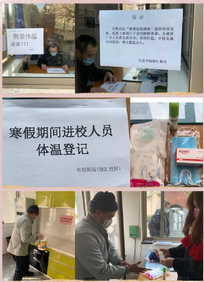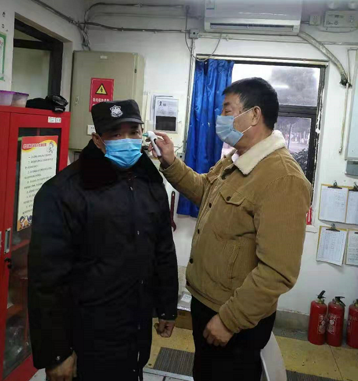 严密疫情防控中的校园显得格外宁静,一线部门工作人员则精神紧绷,生怕放过一个消毒死角、错过一位进校人员。后勤保障处严格做好楼栋和办公室消毒,医务室向全部值班人员发放了口罩,普及防疫知识。安全保卫处认真落实假期值班制度,扎实开展校园安全巡查,严把“入口”关,各校区对进校人员进行体温测量,严禁校外车辆进入校园。门卫值班人员表示,一定尽职尽责,为学校守好大门。食堂确保供应可口饭菜,让教职工在校期间放心安心。