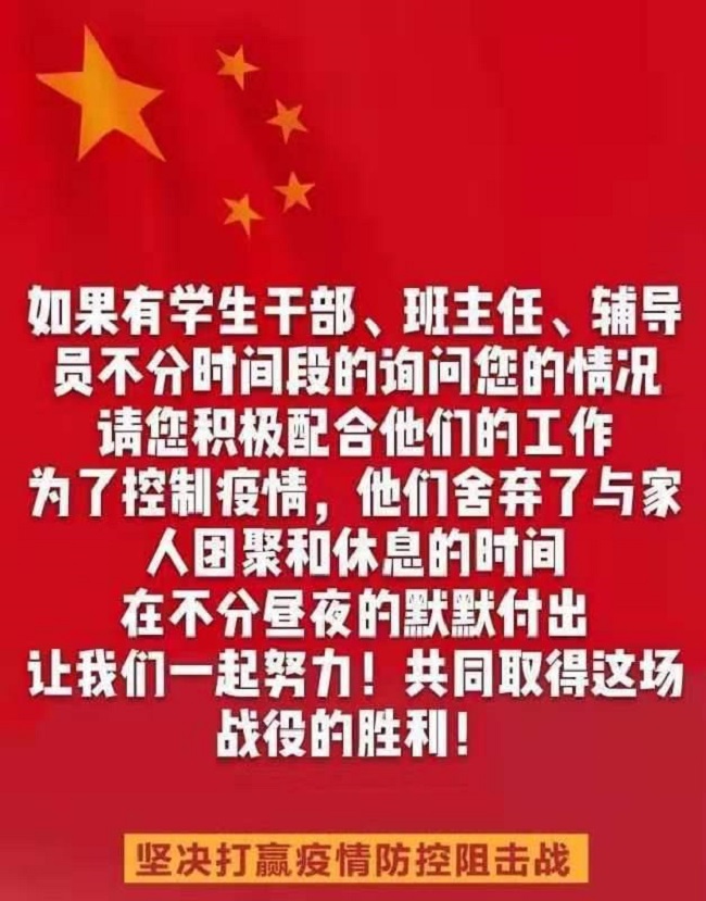面对同学们的急切心情,大家都有着一个明确的共识:既是信息的排摸工作,更要体现对同学们的关心关爱。工作基于排摸统计,但又怎能止于排摸统计?疫情牵动着全国人民的心,面对疫情的不确定性,同学们更需要老师们的指导和帮助。老师们耐心细致地进行解答,将共性的需要梳理出来,帮助学校形成《关于科学防控新型冠状病毒感染肺炎的温馨提示》、《关于顶岗实习学生延迟返岗实习的通知》、《给学校全体同学的一封信》,及时地回应了同学们关切。
