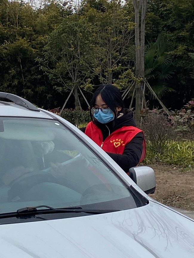在每天做好学生的沟通工作的同时,沈老师还积极参与东台市新街村村支部组织的志愿者服务工作,她负责在村口认真地对来往车辆登记,对车内人员进行体温监测,并告知前往海安的道路已封,劝其返回。面对一位位老乡,她耐心地提醒道:“不恐慌焦虑,不迷信,不走亲访友,少出门,勤洗手。”