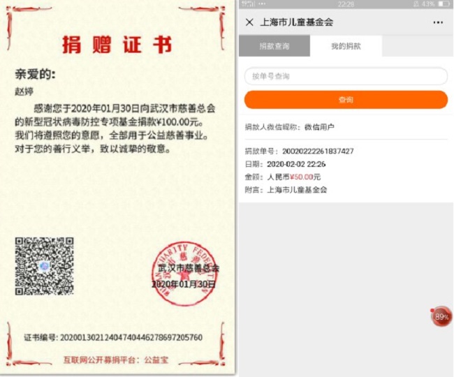 赵婷老师得知当前正是控制新型冠状病毒肆虐的紧要关头,具有防护功能的口罩变得十分紧缺,为支持疫情防控工作,本想购买口罩和消毒液等物资寄往医院,但是由于实际情况,物资采购困难,于是她分别向上海市儿童基金会和武汉市慈善总会进行了捐款,希望通过自己的努力为疫情防控贡献自己的力量。她认为,这是责任,也是义务,相信我们一定能够早日战胜疫情,祝愿大家身体安康,武汉加油,中国加油!