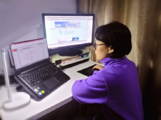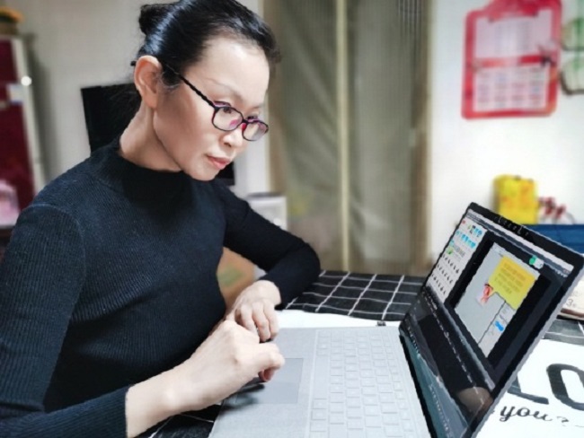 《计算机应用基础》前期以录屏为主,为了保持录屏环境,老师们经常工作到深夜。团队成员涂蔚萍老师是计算机应用基础教研室主任,她发动整个教研室教师,并用之所长,为了赶进度、把控质量,涂老师几乎全天都坐在电脑旁工作,刚上初三的儿子成了家里的大忙人,上网课、点外卖、取外卖。晚上,等孩子睡下了,涂老师继续忙碌至凌晨。