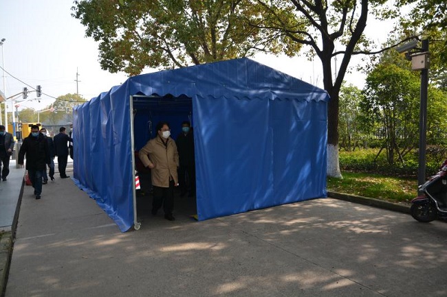 副巡视员杨伟人一行实地检查了校园疫情防控工作,走访了教学园区、生活园区,查看了门卫、食堂、监控室、热成像仪等的管理和运行情况,详细了解开学保障工作及在线课程教学实施状况,提出在校门口设置发热人群隔离区域,做好图书馆、体育运动场等公共区域的消毒、测温和分流、预约使用等工作,重点加强食堂就餐、医务室发热门诊等操作性强的应急工作的准备,充分发挥干部、党员积极参与秩序维持等志愿服务工作。