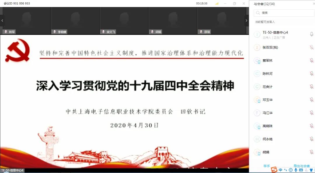 为深入学习习近平新时代中国特色社会主义思想,进一步深刻学习领会党的十九届四中全会精神,并将精神转化为推动学校发展,提升学校治理体系和治理能力建设的强大动力,推进学校“双高”标准的“双一流”院校建设,4月30日,学校党委中心组在徐汇校区106报告厅召开2020年第二次学习会。