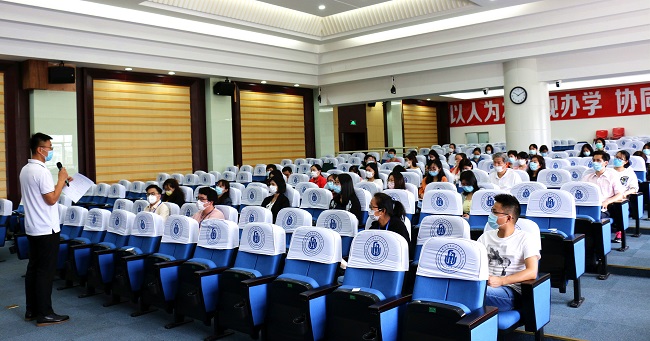 上午,集体备课活动在C108举行。学校党委副书记、副校长张涛,各二级学院学生工作分管领导、学管办主任、辅导员、学工部相关人员、全体宿管员参加活动。学工部副部长栾文飞从当前新冠肺炎疫情国内外形势、学校疫情防控总体情况、学生返校后学习生活以及新学期新气象四个方面,对于返校第一课内容进行了解读。