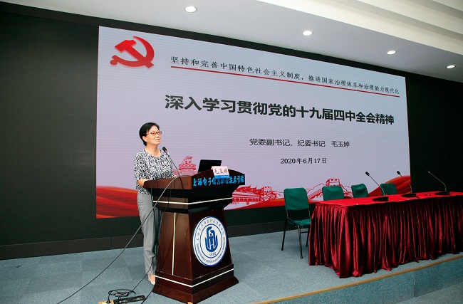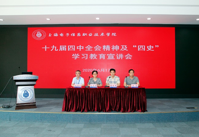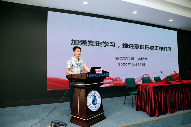 6月17日,学校在C108报告厅举行党的十九届四中全会精神及“四史”学习教育宣讲会。党委副书记、纪委书记毛玉婷,纪委副书记施嘉斌,党委宣传部部长谌明举,马克思主义学院党支部副书记江龙“组团”宣讲。各部门宣传员、新媒体管理员、二级纪检员参加学习。宣讲会由党委宣传部部长谌明举主持。