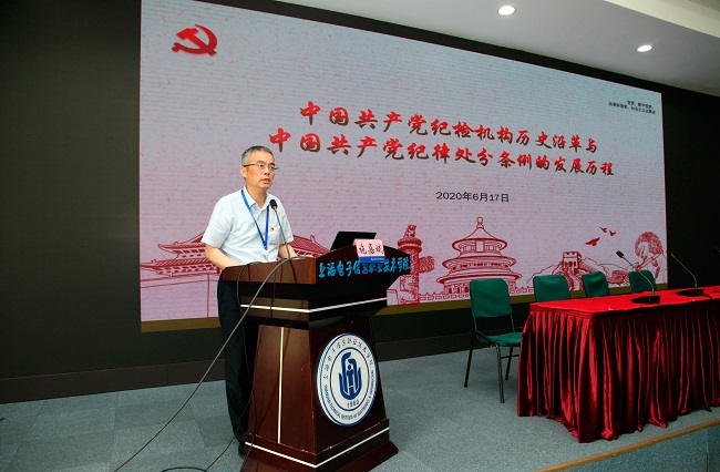 纪委副书记施嘉斌以“中国共产党纪检机构历史沿革与中国共产党纪律处分条例的发展历程”为题,详细讲述了中国共产党成立以来始终重视党风党纪建设,党的纪检机构的历史沿革及其职能演变,以及《中国共产党纪律处分条例》的发展历程、基本架构和特点。