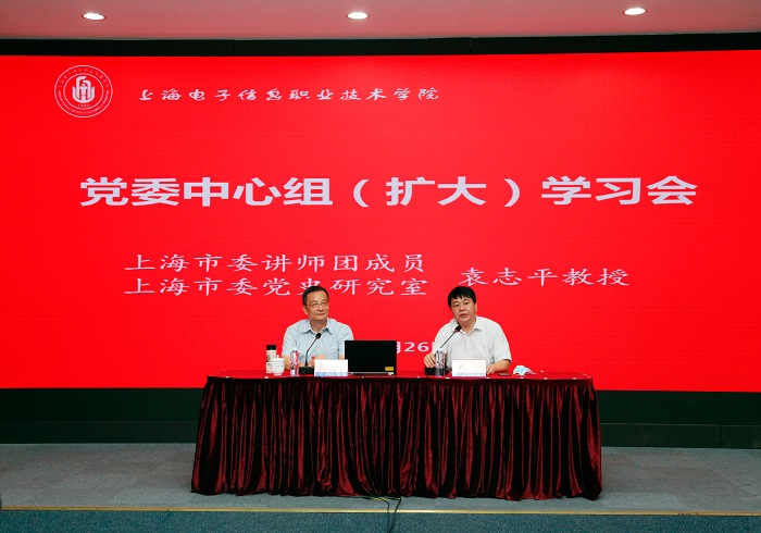 6月26日,学校召开党委理论学习中心组(扩大)学习会,邀请上海市委党史研究室研究员、市委讲师团成员袁志平教授主讲“四史”。学校党政领导、中层干部、党支部书记、组织员参加学习。党委书记田钦主持学习会。