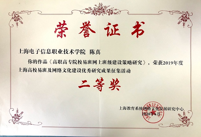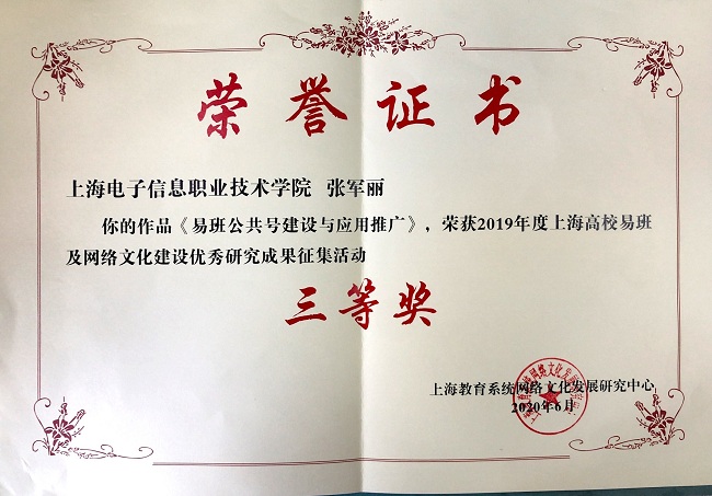 喜报传来!在刚刚结束的2019年上海高校易班及网络文化建设优秀成果征集评选活动中,365官网易班发展中心主任杨洋的《百米画卷绘征程 思政微课进易班》荣获优秀工作案例二等奖,电子技术与工程学院党总支副书记、副院长陈真的《高职高专院校易班网上班级建设策略研究》、电子技术与工程学院张军丽老师的《易班公共号建设与应用推广》分获优秀研究成果二等奖、三等奖。